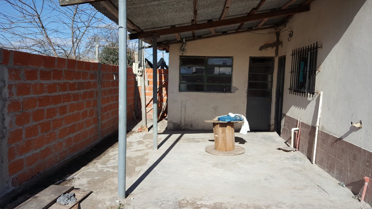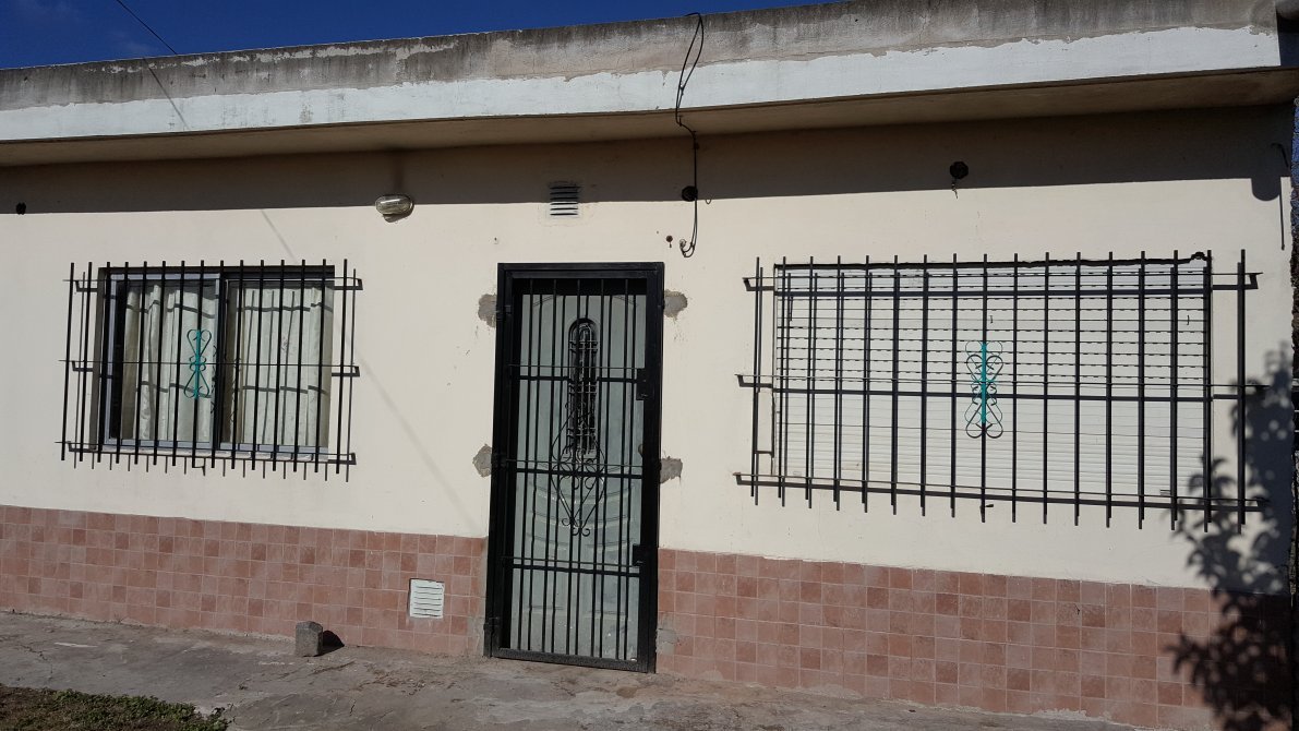Casa de material sobre esquina. Cuenta con dos habitaciones, amplia cocina comedor y baño completo. Todos los pisos revestidos con cerámico. Posee termotanque, agua corriente, con bomba y cisterna. Entrada para auto, pequeña galería y patio.